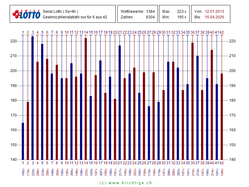 dem 12.01.2013 wird Swiss Lotto im Modus 6 aus 42 und einer Glückszahl