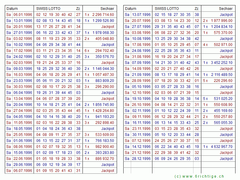 Schweizer Zahlenlotto - Swiss Lotto 6 aus 42